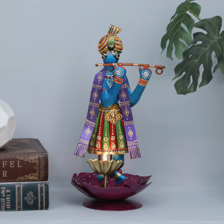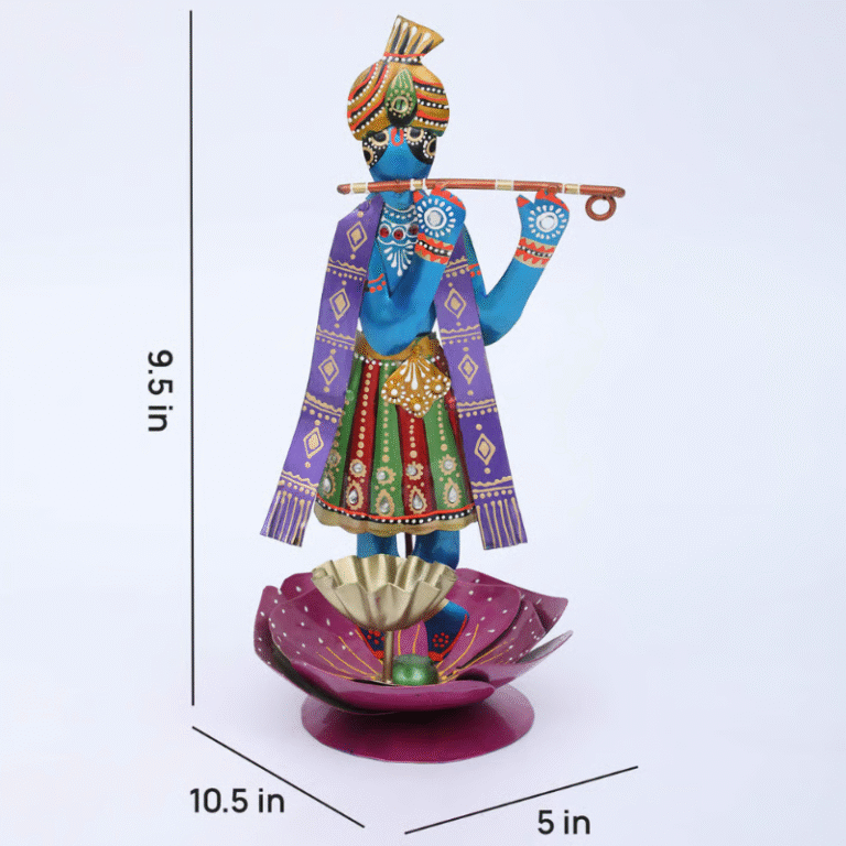 Decorative Krishna Multicolour Metal Table Tea Light Holder Colorful Indian Musician Sculpture by decorum