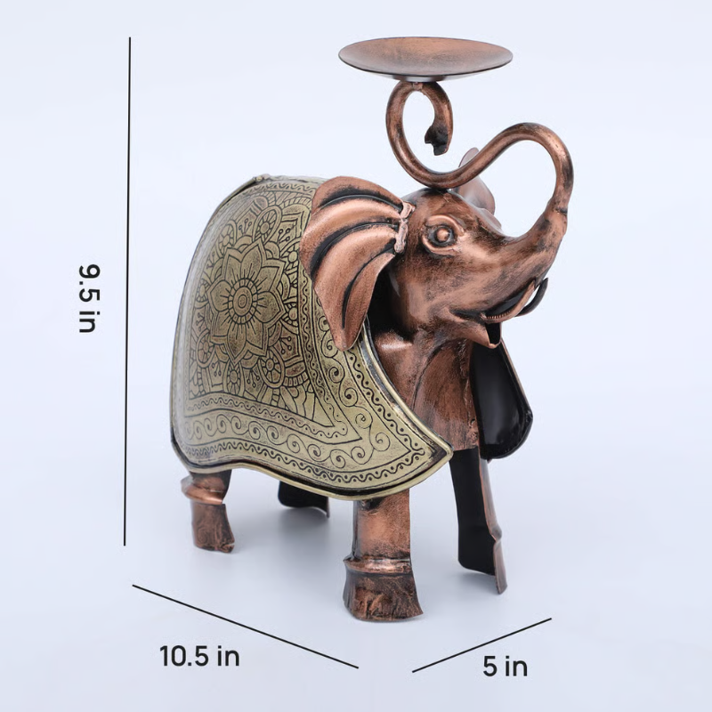 Decorative Elephant Multicolour Metal Table Tea Light Holder Colorful Indian Musician Sculpture by decorum