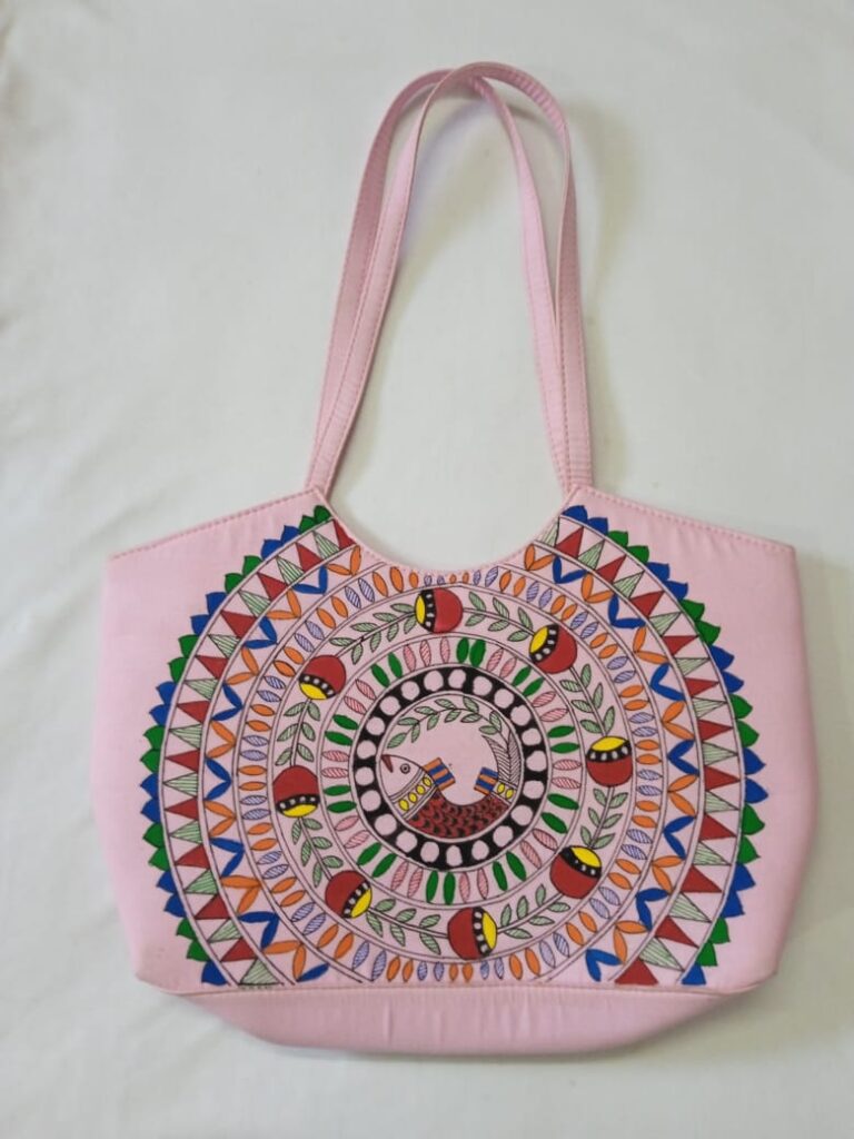 a hand-painted clutch bag featuring traditional Madhubani art by antara verma