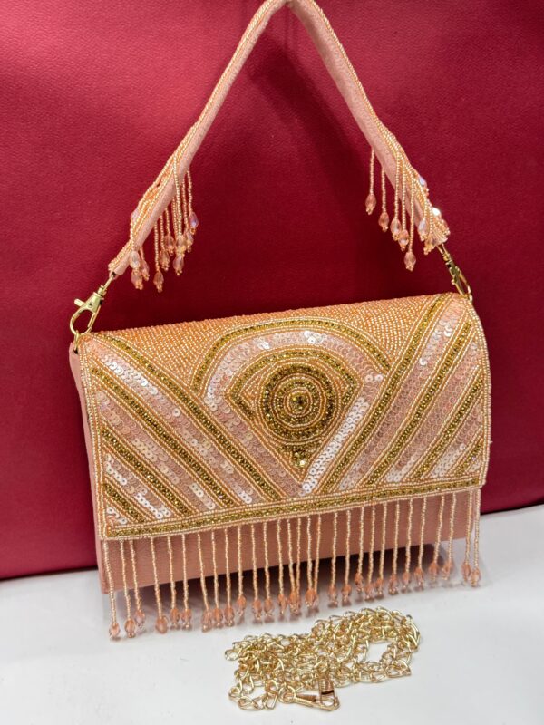 a hand-painted clutch bag featuring traditional Madhubani art by antara verma