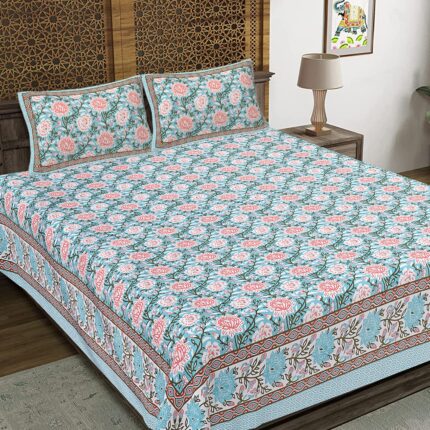 King size bedsheet (1+2) King size 93*108 Quality pure heavy 100% cotton 1 bedsheet and 2 ziplock pillow cover set