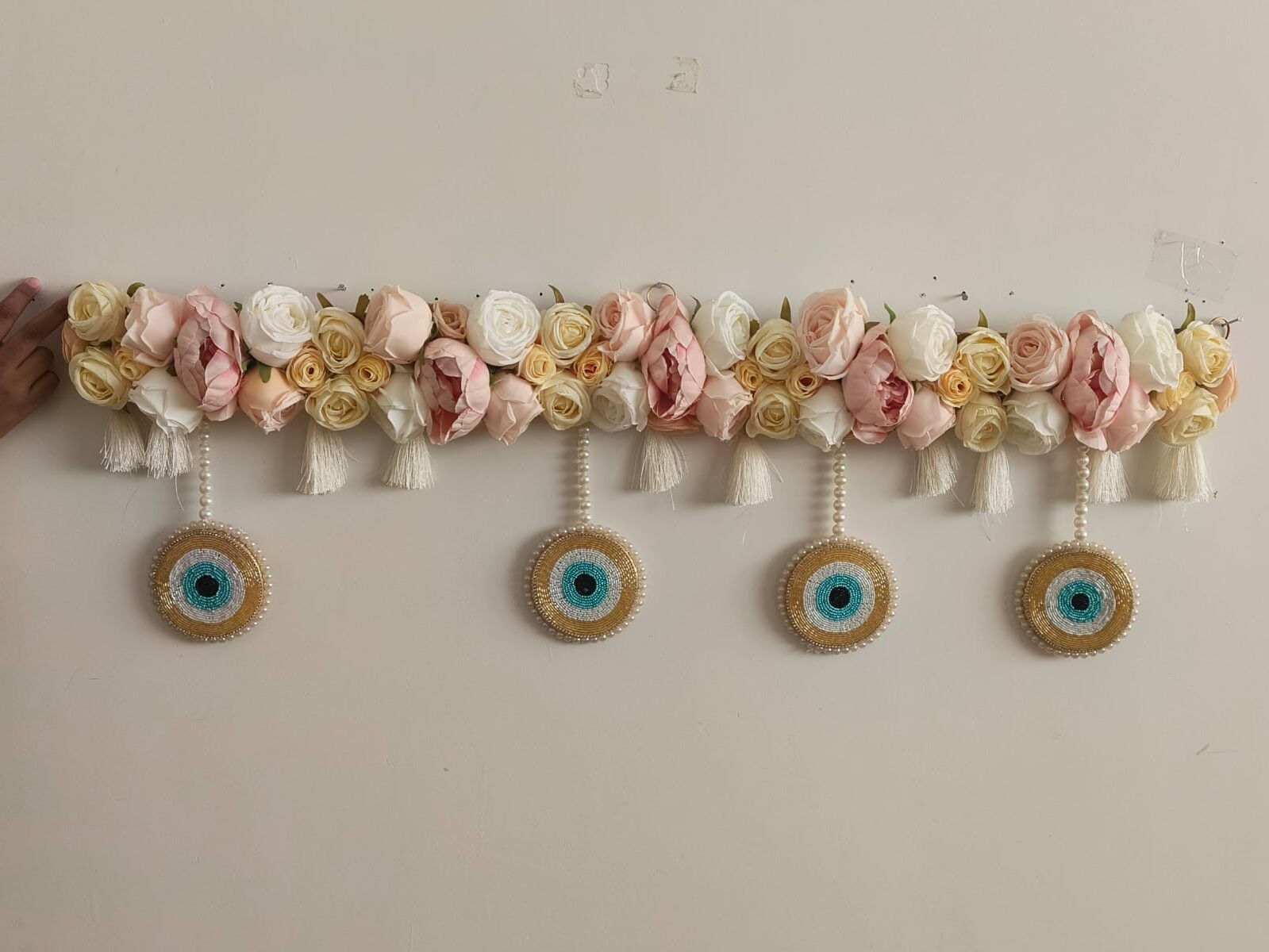 a decorative floral garland designed for hanging over a doorway by aanchals creations