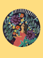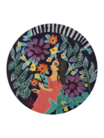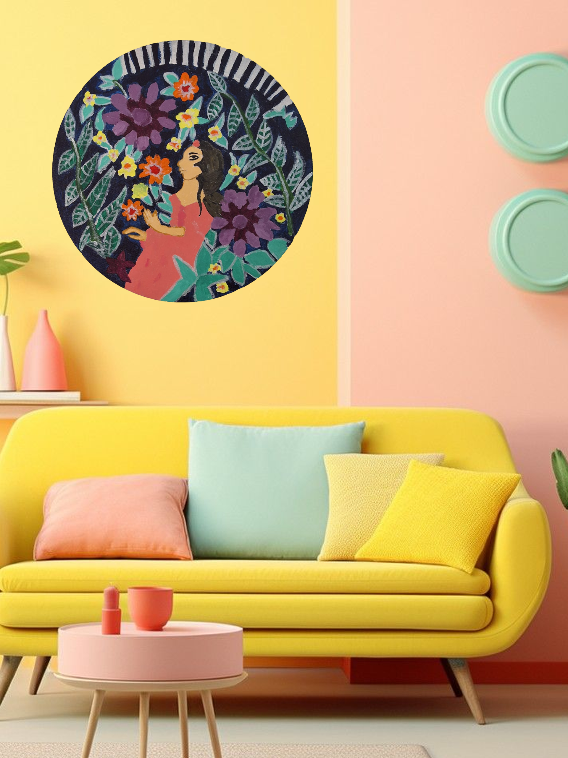 a circular painting depicting a woman
